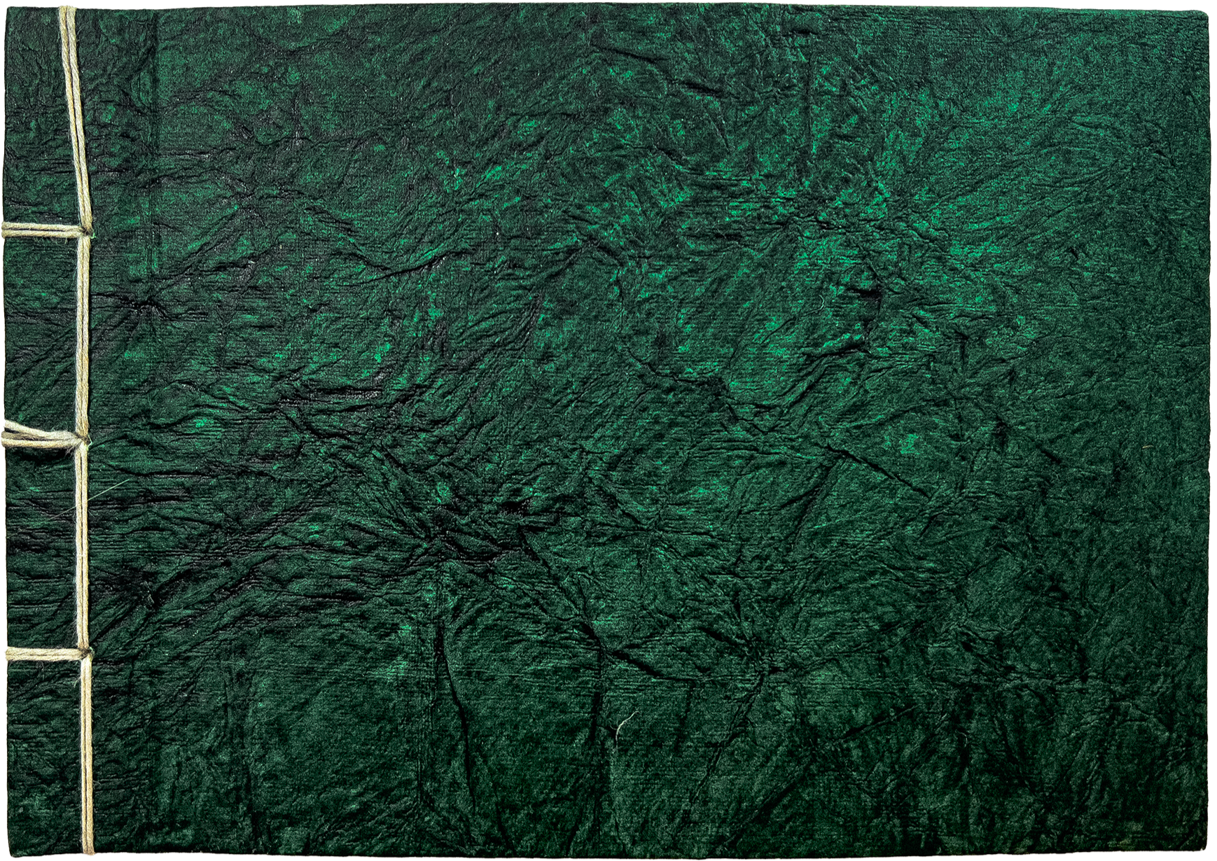 Handcrafted and hand-stitched, it combines analog photographs with drawings traced on translucent paper.